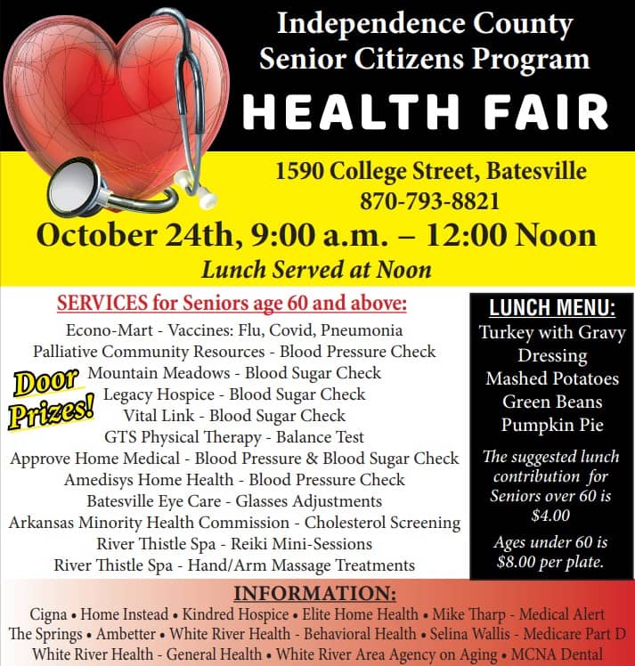 The Independence County Senior Citizens Program is hosting a Senior Health Fair on Tuesday, Oct. 24, 2023.