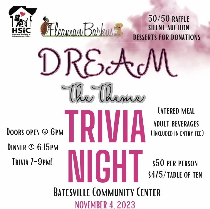 Brush up on your trivia skills, and support the Humane Society of Independence County (HSIC) tomorrow at the organization’s annual “Trivia Night.”