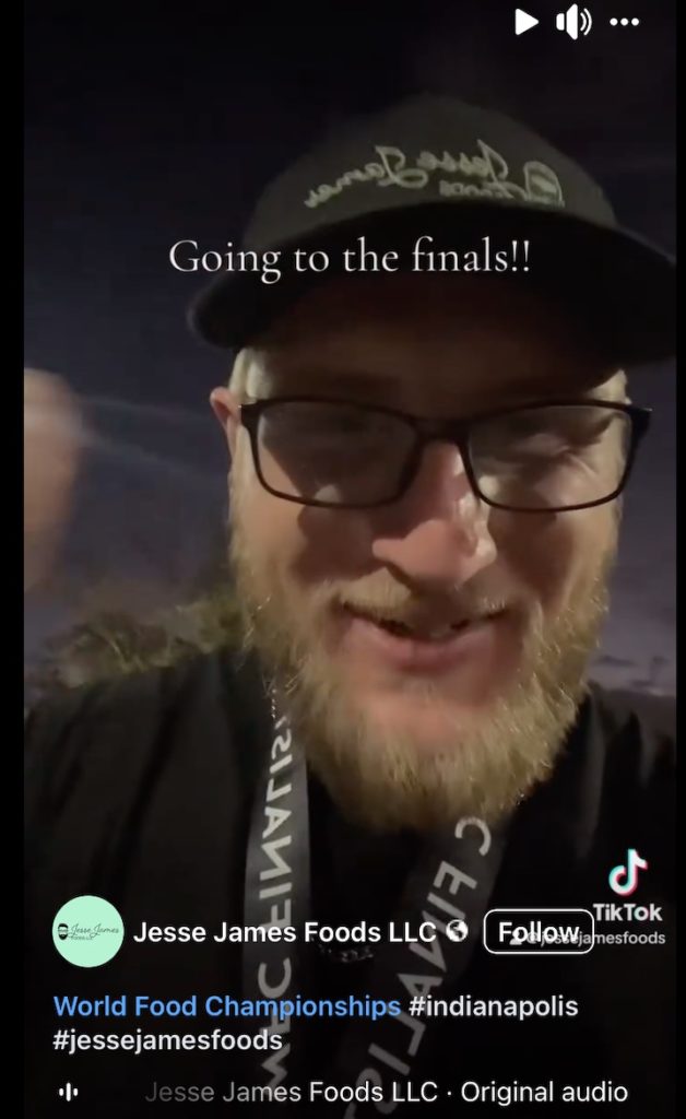 A screenshot of Jesse Dorris in competition at the World Food Championships.
