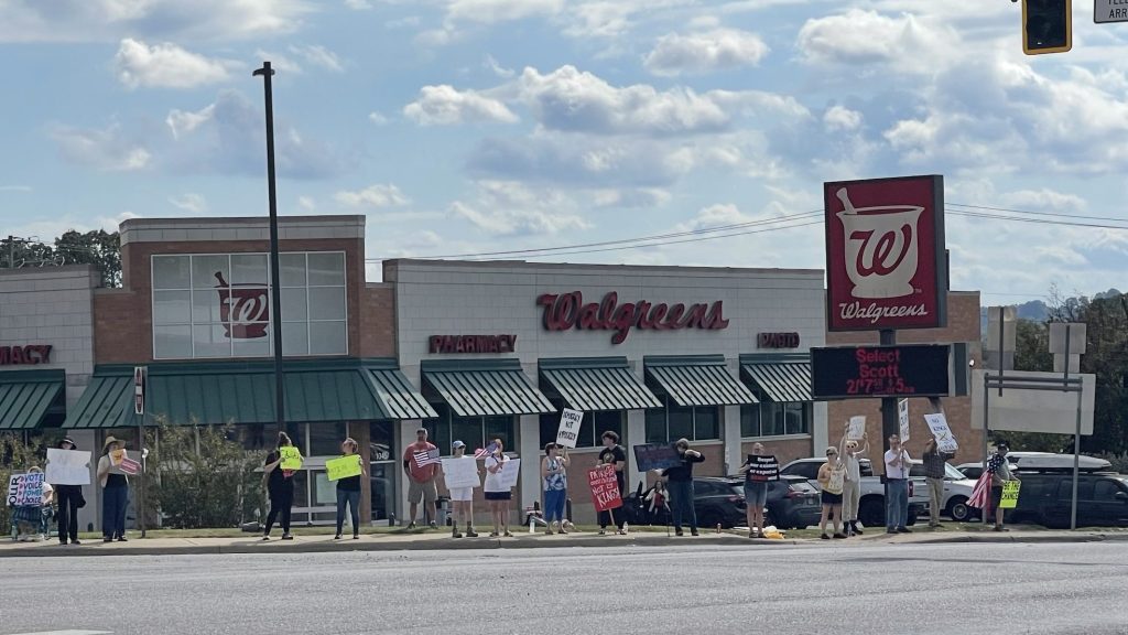 Protesters said drivers passing by honked, waved, and showed support. One participant, Alisa Lancaster, said, “This has nothing to do with being a Democrat or being a Republican. This is about our democracy and our Constitution, and we should all be fearful about what is going on.”