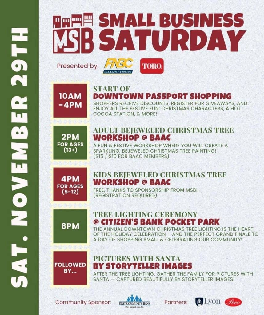The holiday festivities continue downtown on Nov. 29, when Main Street Batesville businesses offer seasonal promotions from 10 a.m. to 4 p.m. featuring cocoa stations and visits with Christmas characters.