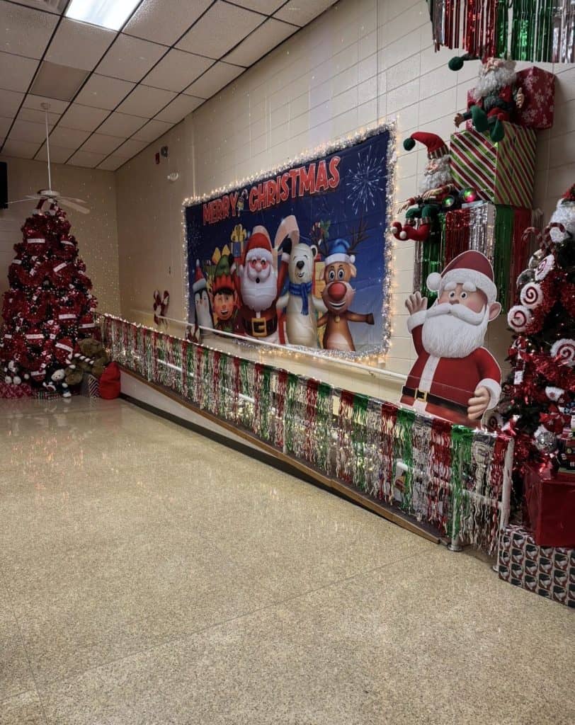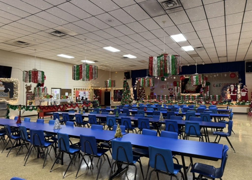 While many people spent Thanksgiving break relaxing and filling their bellies, Heath Wilson spent his time at school. Wilson, Cedar Ridge Elementary’s long-tenured janitor, decorates the cafeteria for every occasion. In spring, bunnies and leprechauns cover the walls. For Halloween, fake spiders hang from the ceiling. But his Christmas decorations stand in a league of their own.