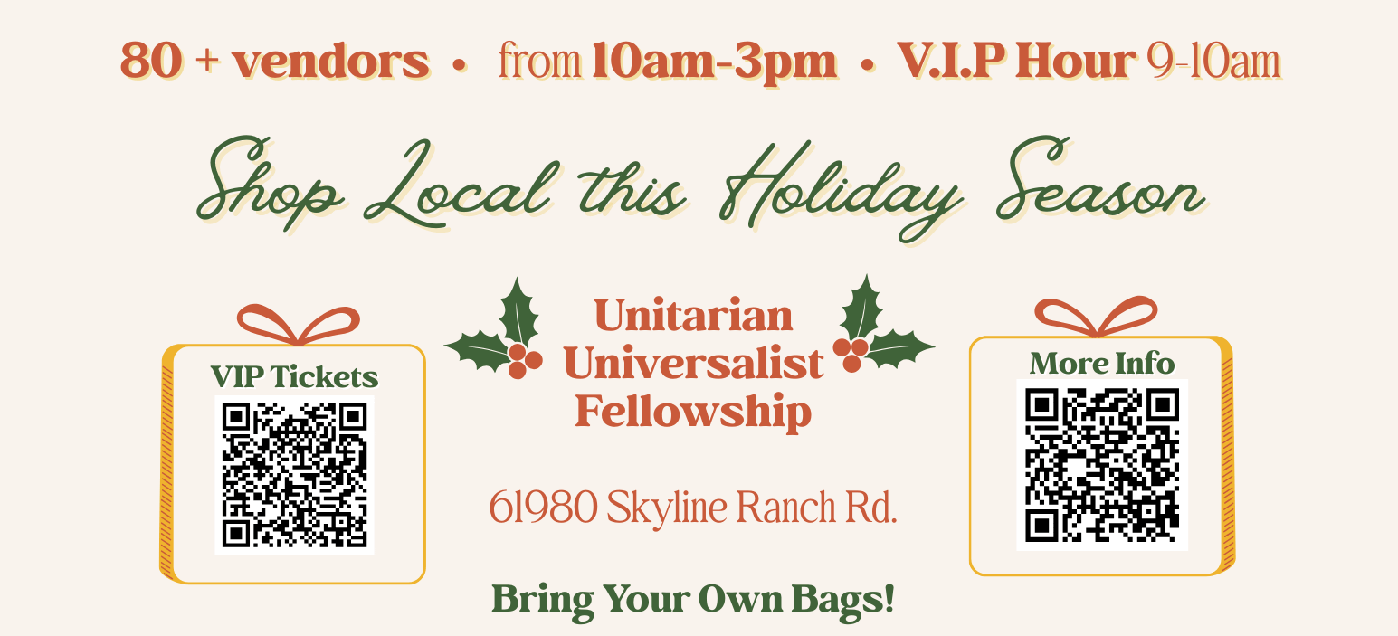 The most beloved holiday market in Central Oregon returns for its 17th year! The Locavore Holiday Gift Faire, hosted by Central Oregon Locavore Nonprofit, will take place Saturday, December 13, 2025, at the Unitarian Universalist Fellowship (61980 Skyline Ranch Rd.) from 10 a.m. to 3 p.m., with a special VIP Shopping Hour from 9–10 a.m.